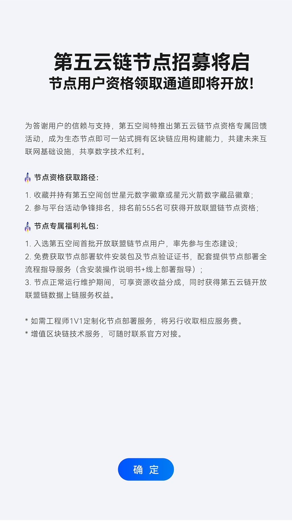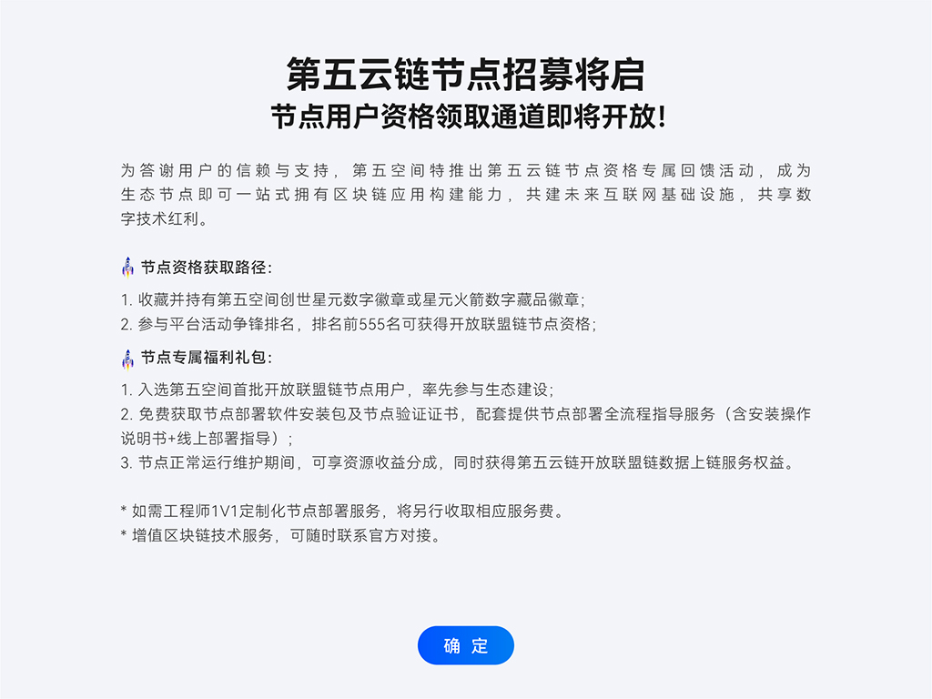 自研联盟链作为一款高效稳定的联盟链,第五云链以秒级确认和万级TPS(每秒交易处理量)为核心优势,满足政务、金融、供应链、AI、教育等多领域的高性能需求。其金融级隐私保护机制通过先进的加密技术,确保数据安全与合规性,为用户提供可信的数字环境。