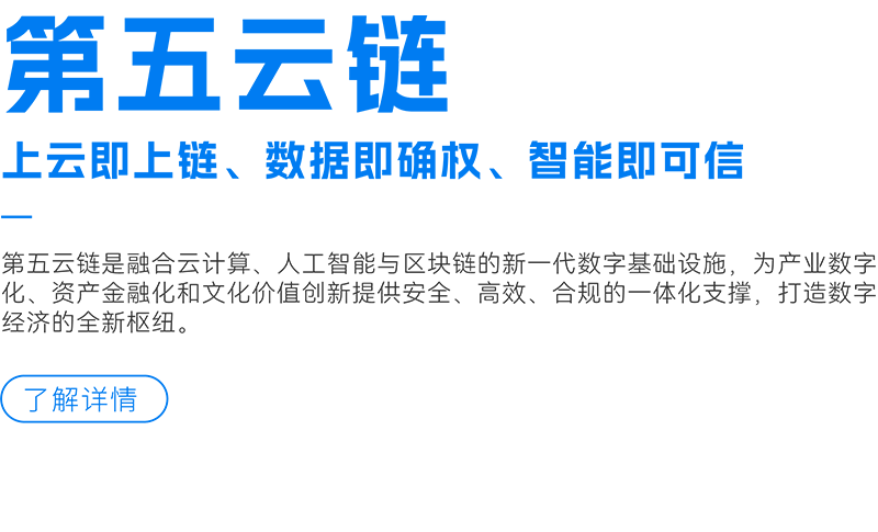 自研联盟链作为一款高效稳定的联盟链,第五云链以秒级确认和万级TPS(每秒交易处理量)为核心优势,满足政务、金融、供应链、AI、教育等多领域的高性能需求。其金融级隐私保护机制通过先进的加密技术,确保数据安全与合规性,为用户提供可信的数字环境。